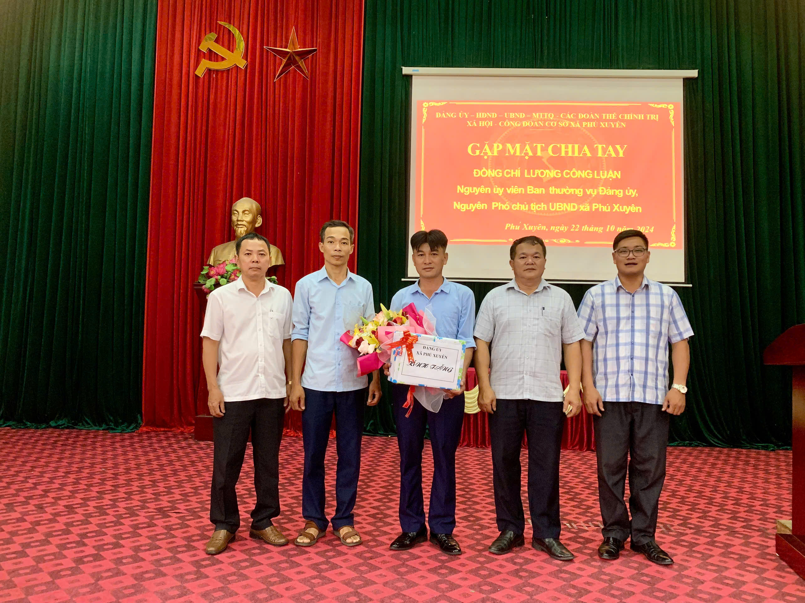Chiều ngày 22/10/2024, Đảng ủy - HĐND - UBND - UBMTTQ xã Phú Xuyên tổ chức gặp mặt chia tay đồng chí Lương Công Luận - Phó Chủ tịch UBND xã chuyển công tác đến đơn vị mới.